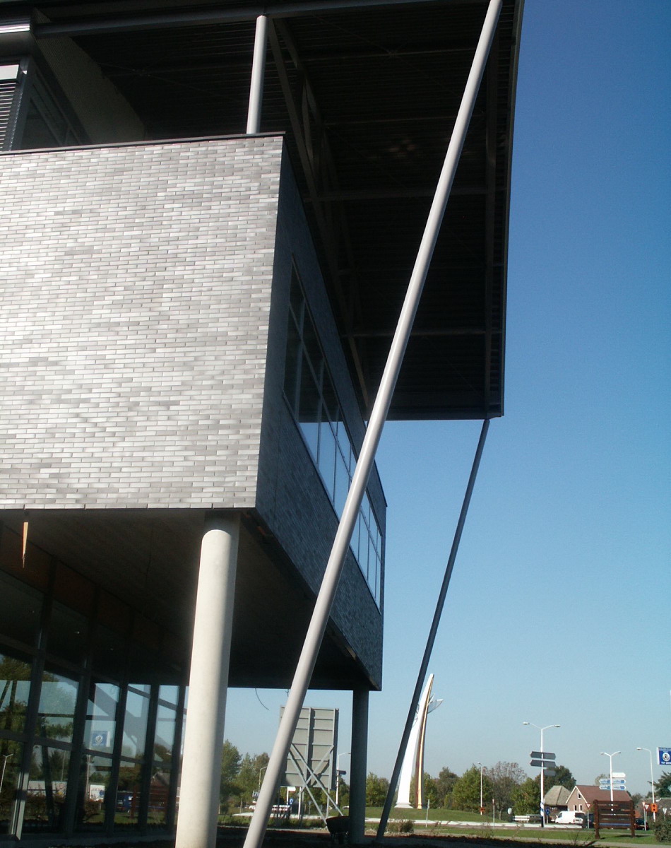 Robust and expressive medium scale office development located on a business estate and entry by-way to the city of Weert in the south of the Netherlands. Comprised of a “dog leg” planned plinth building with 3 elongated volumes perpendicular and parallel volumes elongated above. A play of diversity in a framework of consistency.