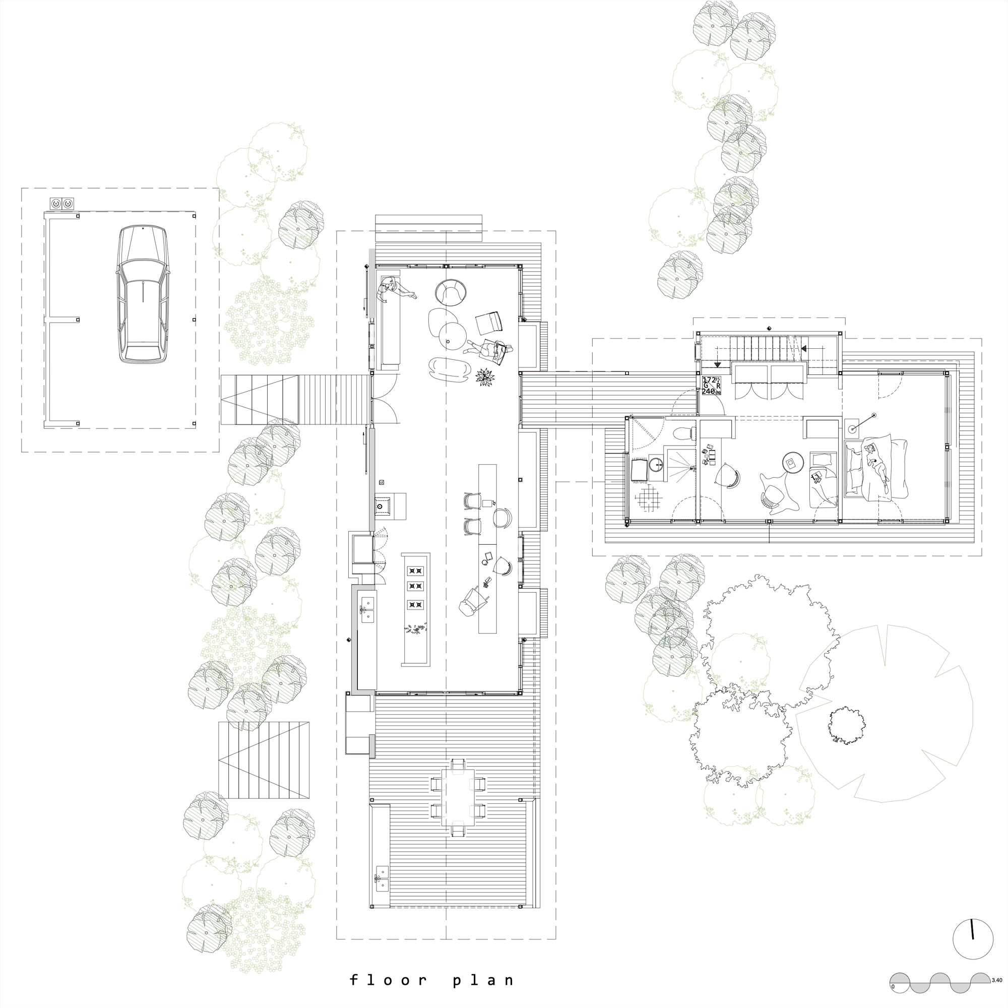 3 pavilion residence design for 5 person household family (clients: artist and designer)