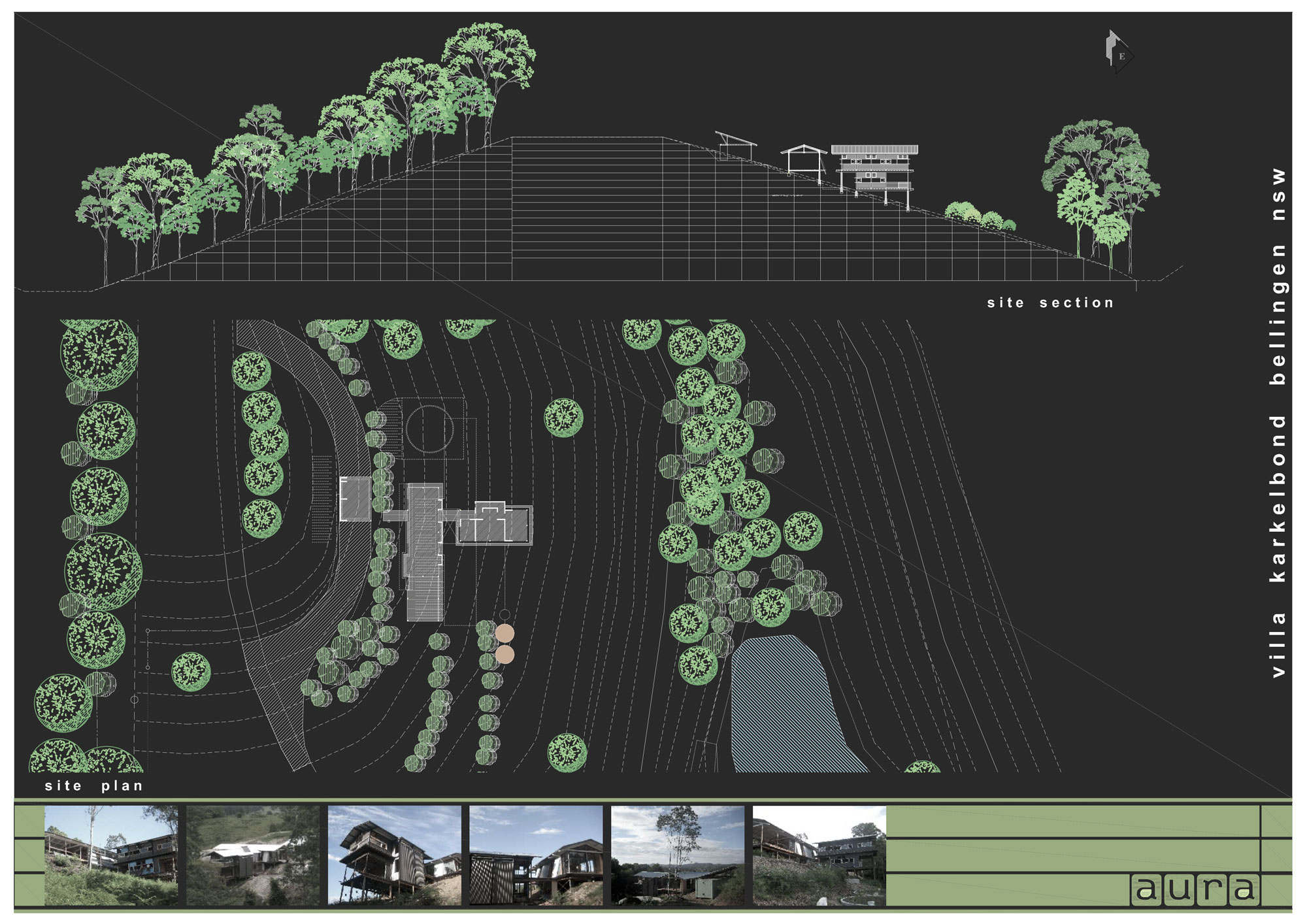 Sustainability and Environment Strategies: Introducing thermal mass in a solar passive design is challenged on steep slopes. Thermal mass in the floor was part resolved using Hebel PowerFloor panels on Lite Steel Beam. In the living area, a rendered mud brick wall served as bushfire protection and thermal mass.